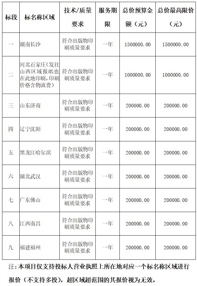 7、投標人僅對所投標段進行報價,印刷費報價應根據(jù)套紅印刷(2+1)的每印張報價,否則視為無效響應;