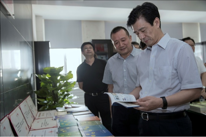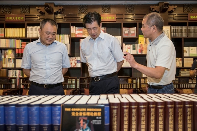 在湖南文藝出版社,蔡振紅部長參觀該社出版的重要圖書品種。