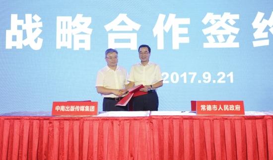 9月21日,2017常德旅游節“親親常德,浪漫之旅”推介會在常德舉行。常德市人民政府副市長涂碧波與中南出版傳媒集團股份有限公司董事、總經理丁雙平簽署戰略合作協議。