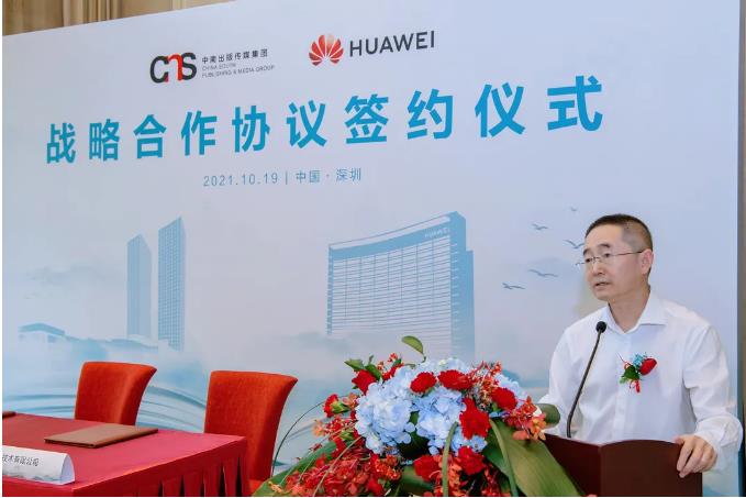 10月19日,華為公司與中南傳媒在深圳簽署戰略合作協議,雙方將在戰略性新興業務以及傳統業務數字化轉型等方面開展深度合作,實現優勢互補、互惠互利、共同發展。華為公司董事、企業BG總裁彭中陽,華為公司湖南總經理吳從成,湖南出版投資控股集團黨委書記、董事長、中南傳媒董事長彭玻,集團黨委副書記、副董事長、總編輯、總經理、中南傳媒董事楊壯等出席簽約儀式。