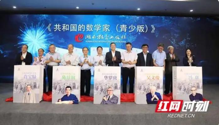 中國科學院院士嚴加安、張偉平、袁亞湘、周忠和、周向宇、湯濤、李駿,湖南省政協(xié)副主席何寄華,中國科學院學部工作局正局級職員、科學傳播局原局長周德進,中國出版協(xié)會副理事長、全民閱讀工作委員會主任聶震寧,中宣部原副秘書長、中國圖書評論學會會長郭義強,湖南出版投資控股集團黨委書記、董事長,中南傳媒董事長賀礫輝,共同為《共和國的數學家(青少版)》新書的發(fā)布揭幕。